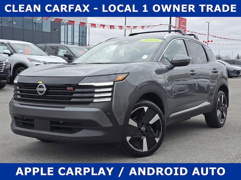 Discover exceptional value with this pre-owned 2025 Nissan Kicks SR, now available in Hopkinsville, KY. With only 5,918 miles, this low-mileage compact SUV pairs efficient performance a 4-cylinder 2.0L gasoline engine with FWD with modern convenience and safety features perfect for daily commutes and weekend adventures. Take advantage of the best price on the market for a Nissan Kicks SR in this condition. Enjoy seamless connectivity with Apple CarPlay and Hands-Free Bluetooth for navigation, music, and calls on the go. Safety-focused tech includes Forward Collision Warning and Rear Parking Sensors to help protect you and your passengers in tight spots. This vehicle comes with a CARFAX Clean Report, giving confidence in its history and reliability. The sporty SR trim adds stylish exterior touches and a comfortable interior designed for drivers who want a blend of efficiency and practicality. Low mileage and careful use mean you get more life and value from this 2025 Nissan Kicks SR compared with other pre-owned options. Located in Hopkinsville, KY, this Nissan Kicks is priced competitively to sell quickly. Schedule a test drive today and see why this model offers outstanding fuel economy, safety features, and the best price in the area. Don't miss this low-mileage opportunity.